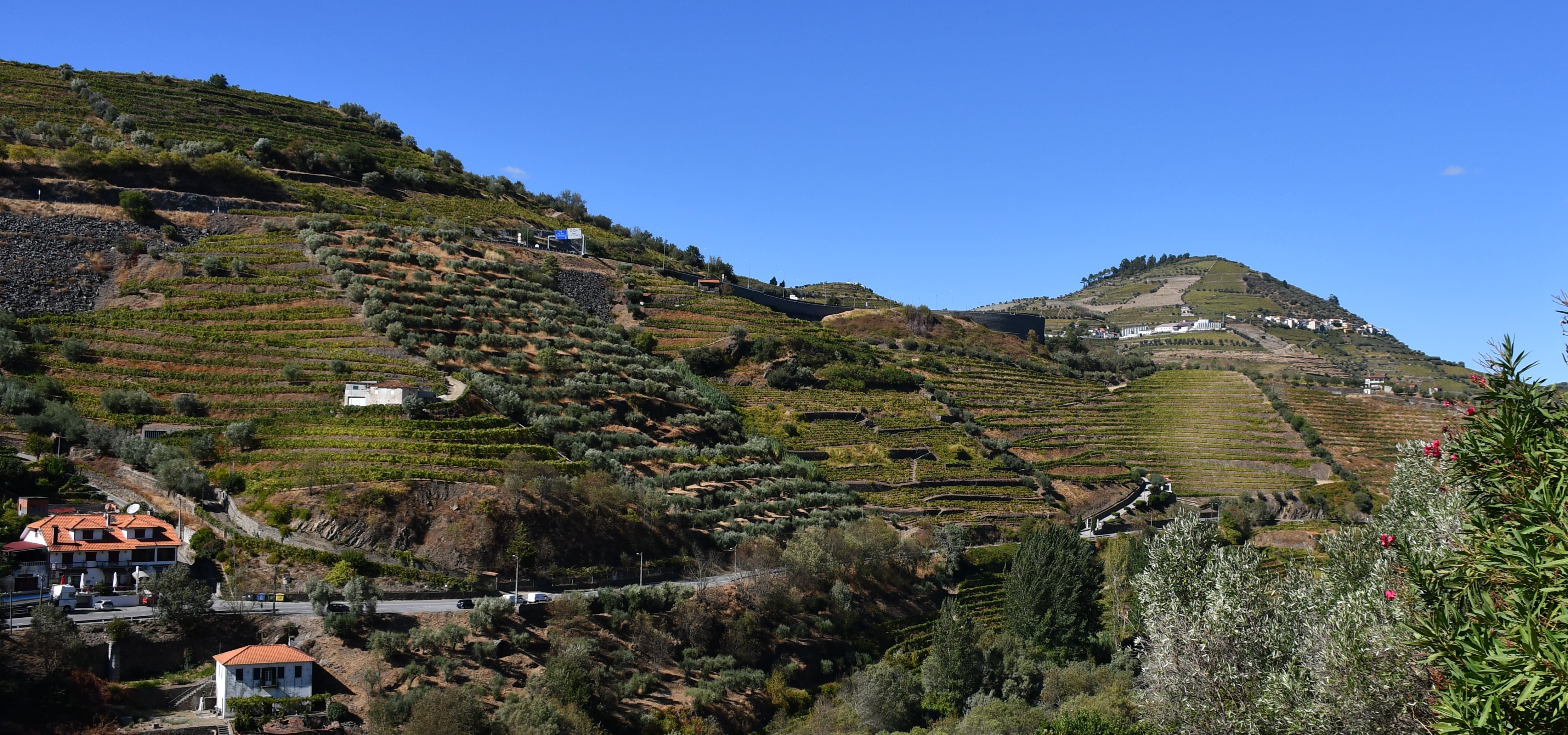 Terraced vineyards of the Douro Valley in Portugal. This view is from Vila Galé Douro Vineyards Hotel where we spent a couple of nights.