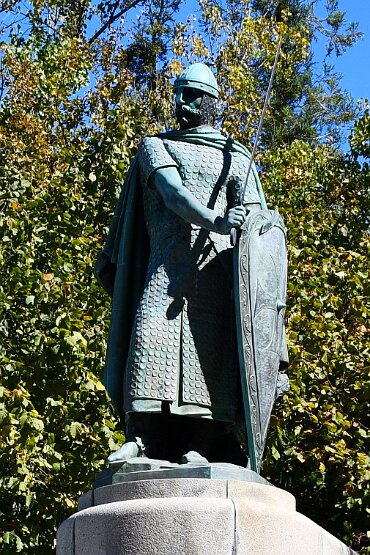 This is a statue of D. Afonso Henriques, the first king of Portugal. It is located in Guimarães, Portugal, a city considered the birthplace of the king and the…