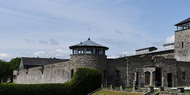 The outer walls and entrance to the SS Guard Courtyard and garages, Mauthausen Concentration Camp, Austria