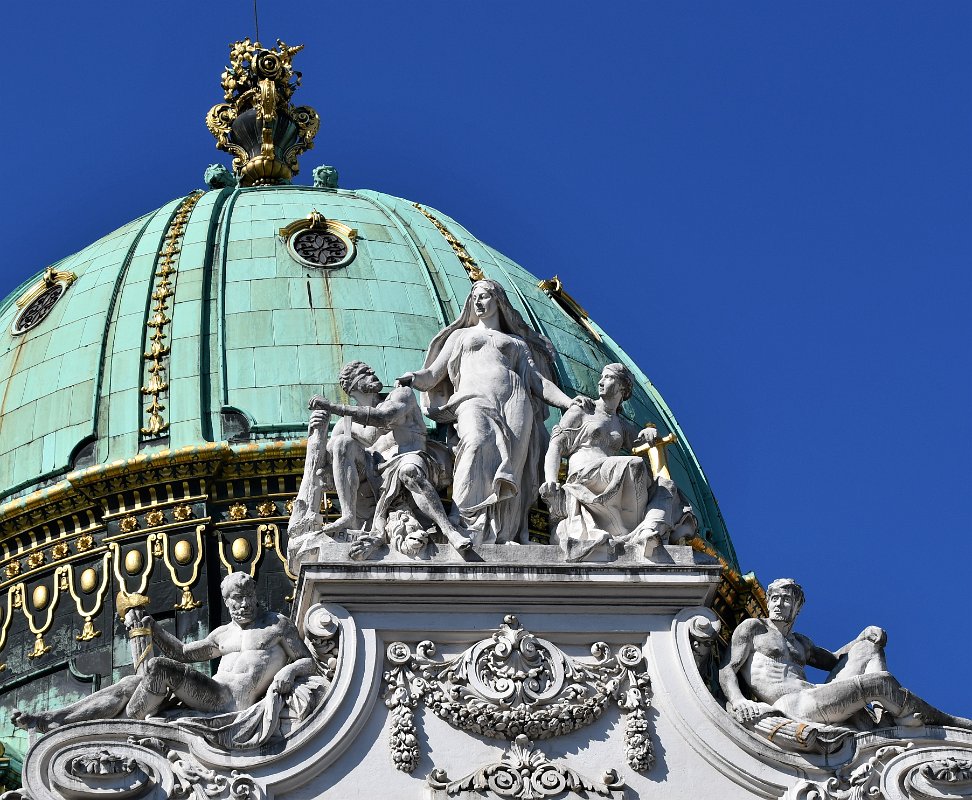 Statues on the roof of the Austrian National Library, Josefsplatz (English: Joseph's Square), Vienna, Austria