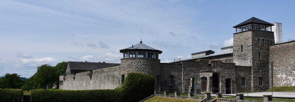 The outer walls and entrance to the SS Guard Courtyard and garages, Mauthausen Concentration Camp, Austria