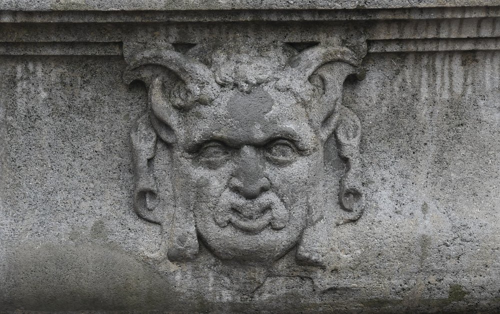 A stone carving on the bowl of Roland’s Fountain (Maximilian’s Fountain). Hlavné námestie (Main Square) in the Old Town historical zone, Bratislava, Slovakia