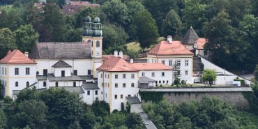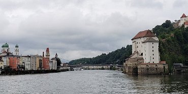 The hilltop fortress complex of Veste Oberhaus above where the Ilz River flows into the Danube at Passau, Germany