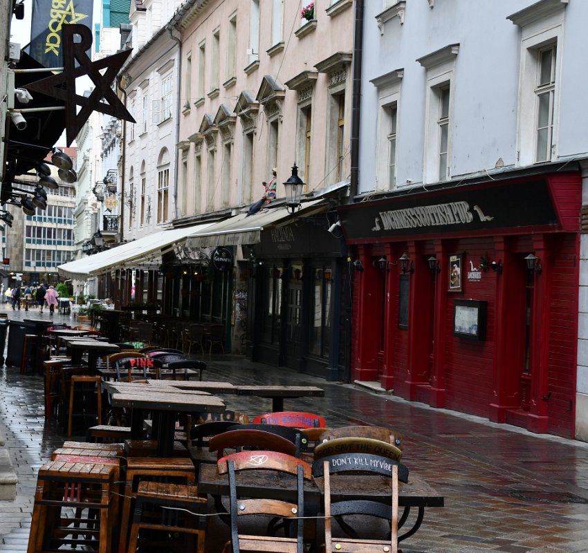 A mannequin dressed as a Mexican on the awning in front of Hacienda & El Diablo Bar, a Mexican Restaurant in the Old Town historical zone, Bratislava, Slovakia