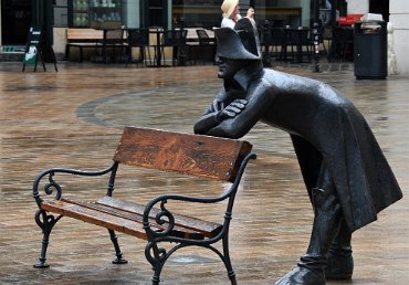 Schöner Náci Statue commemorating an eccentric & beloved local street character of the mid-20th century. Hlavné námestie (Main Square) in the Old Town…