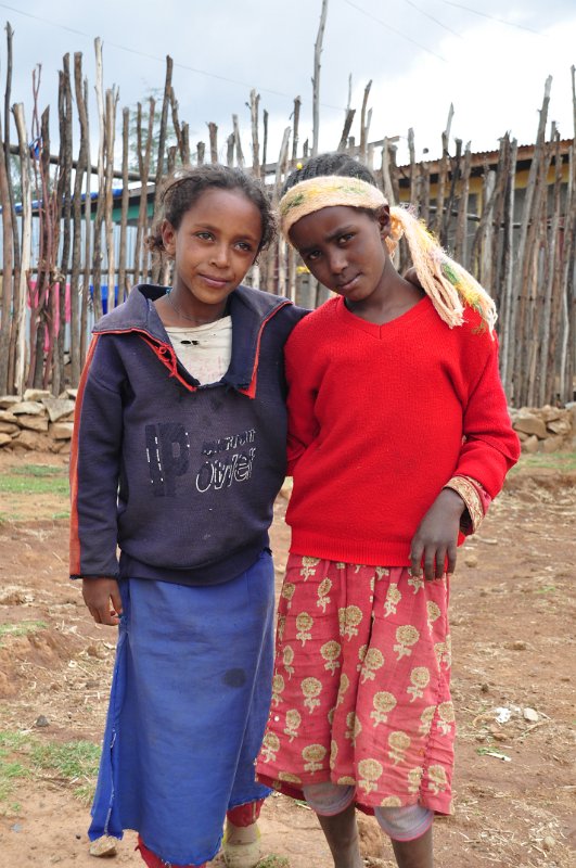 A young girl in Debre Birhan playing with a stick